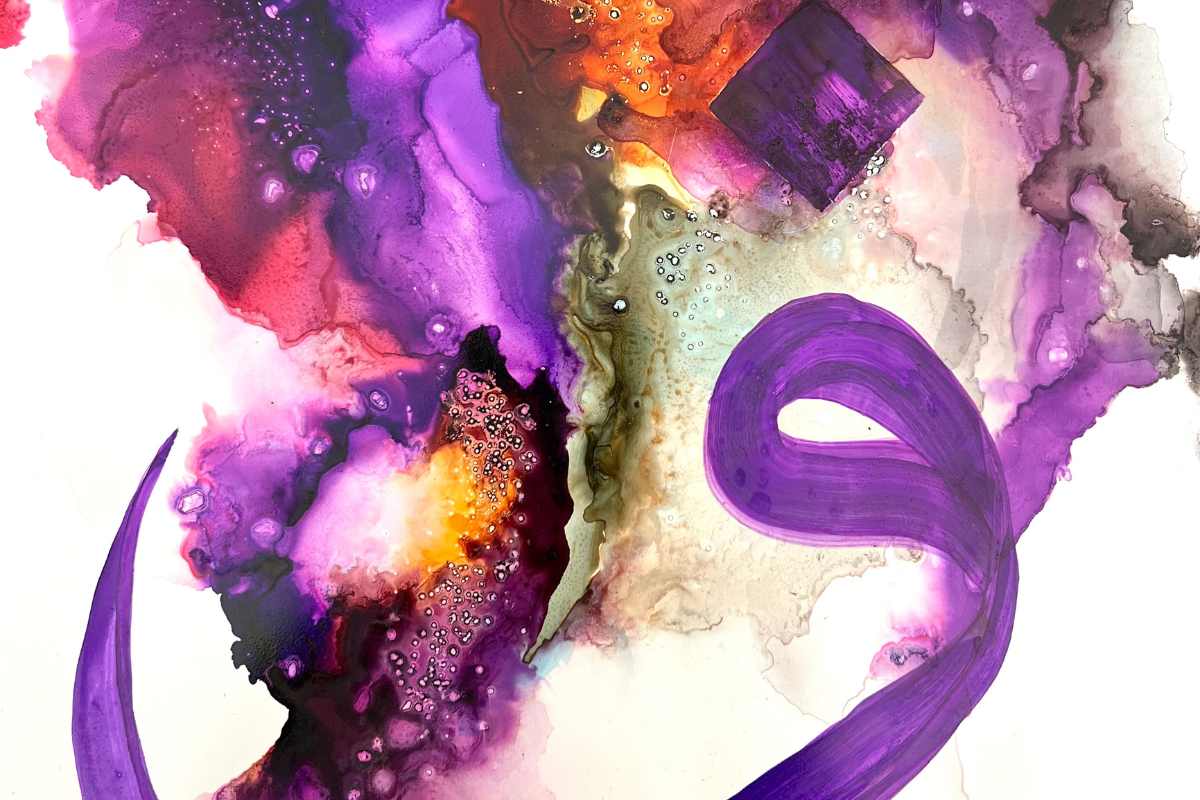 اكتشف وجرب الحبر الكحولي كوسيلة فنية جديدة. يمكن استخدام الحبر على مجموعة من الأسطح من الورق والبلاستيك. قم بإنشاء لوحة تجريدية خاصة بك مع دمج الخط العربي.